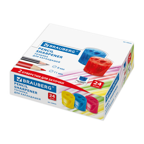 Точилка BRAUBERG "Cell Dual", 2 отверстия для чернографитных карандашей (в том числе утолщенных), с контейнером, корпус ассорти, 228435