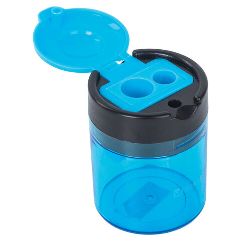 Точилка BRAUBERG "Office Round", 2 отверстия для чернографитных карандашей (в том числе утолщенных), с контейнером, ассорти, 228446