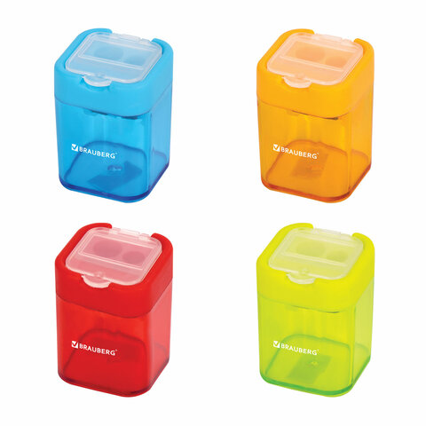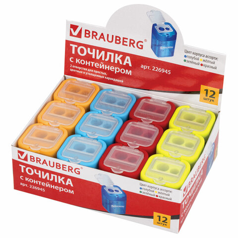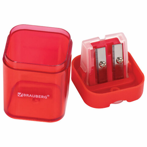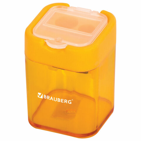 Точилка BRAUBERG "Peak", 2 отверстия для чернографитных карандашей (в том числе утолщенных), с контейнером, пластиковая, ассорти, 226945