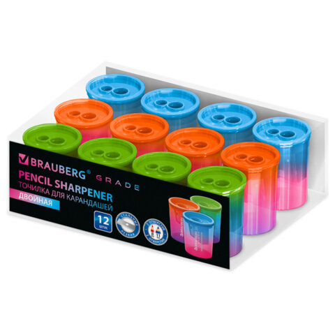 Точилка для классических и утолщенных карандашей BRAUBERG "Grade", 2 отверстия, с контейнером, 271998