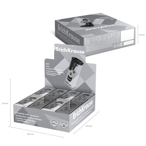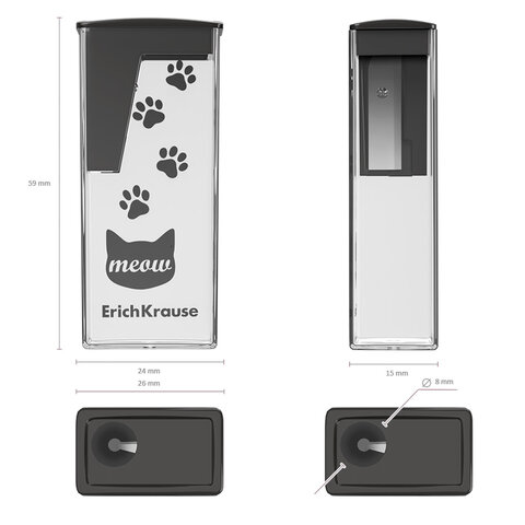 Пластиковая точилка ERICH KRAUSE "City Meow" с контейнером для сбора стружки.