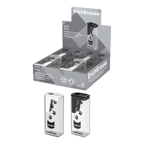 Точилка ERICH KRAUSE "City Meow", с контейнером, пластиковая, корпус ассорти, 61543