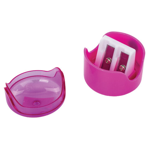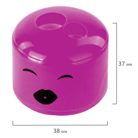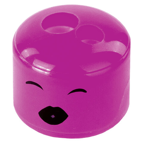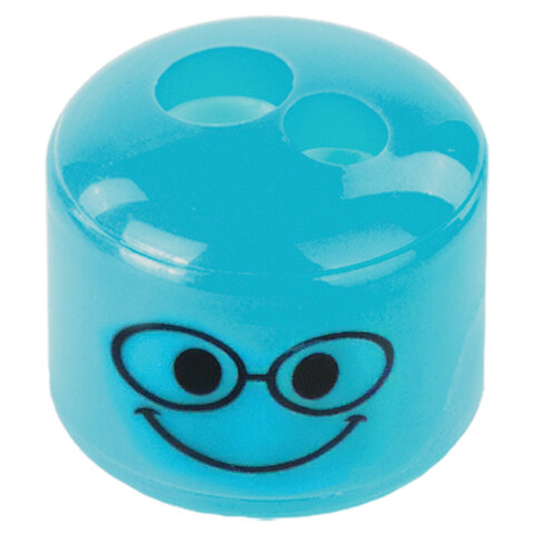 Точилка ПИФАГОР "Смайлики", 2 отверстия для чернографитных карандашей (в том числе утолщенных), с контейнером, пластиковая, ассорти, 228444
