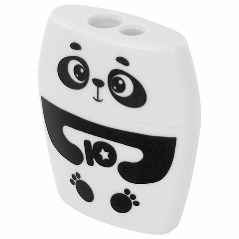 Точилка с контейнером для простых и утолщенных карандашей ЮНЛАНДИЯ "ПАНДА", 2 отверстия, 272507