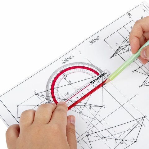 Прозрачный транспортир BRAUBERG предназначен для чертёжных и измерительных работ.