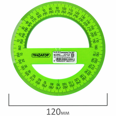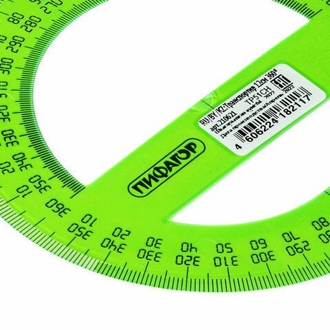 Прозрачный транспортир ПИФАГОР незаменим для чертёжных и измерительных работ.