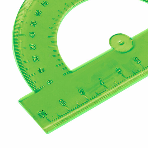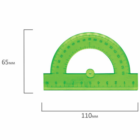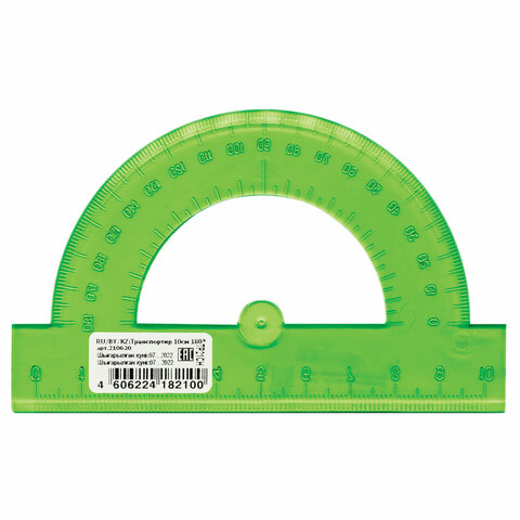 Транспортир пластик 10 см, 180 градусов, BRAUBERG, прозрачный, неоновый, ассорти, 210620