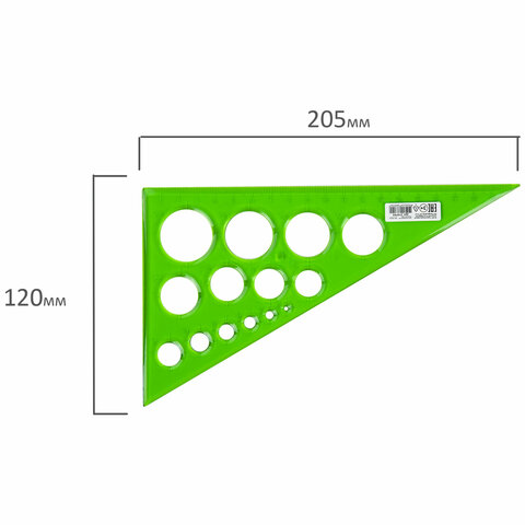Треугольник пластиковый 30х19 см, ПИФАГОР, с окружностями, прозрачный, тонированный, 210793