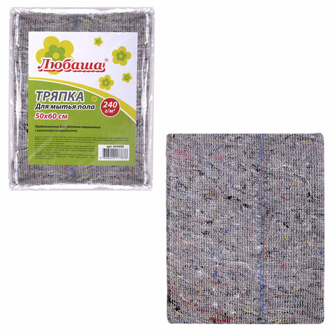 Тряпка для мытья пола 50х60 см, плотность 240 г/м2, серое ХПП, 95% хлопок, 5% полиэфир, ЛЮБАША, 604690