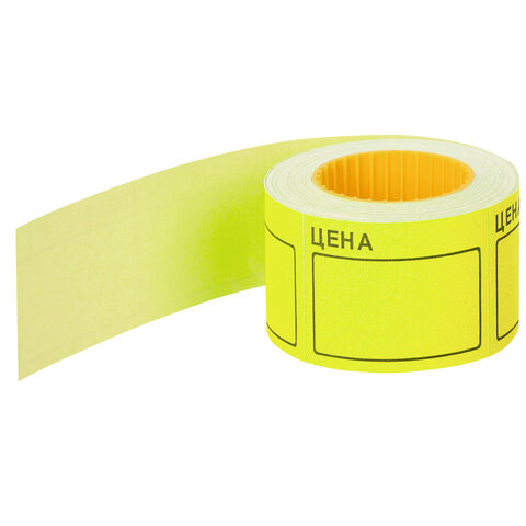 Ценник большой "Цена" 50х40 мм желтый, самоклеящийся, КОМПЛЕКТ 5 рулонов по 200 шт., BRAUBERG, 112358