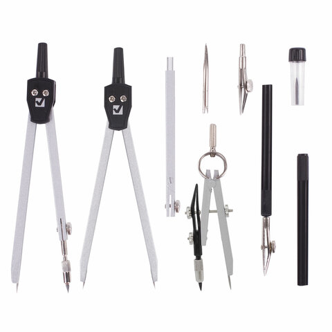 Готовальня BRAUBERG "Architect", 9 предметов: циркуль + измер + кронциркуль, рейсфедер + держатель, 2 вставки, удлинитель, грифель, 210353