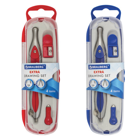 Готовальня BRAUBERG "Extra", 4 предмета (циркуль 125 мм, точилка, отвёртка, грифель), 210686