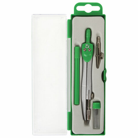 Металлическая готовальня BRAUBERG "Klasse" предназначена для выполнения чертежных работ. Для учеников младших и средних классов.