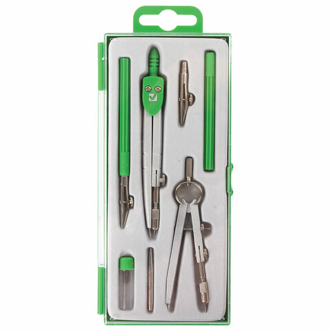 Готовальня BRAUBERG "Klasse", 7 предметов: циркуль+кронциркуль, рейсфедер + держатель, 2 вставки, грифель, 210344