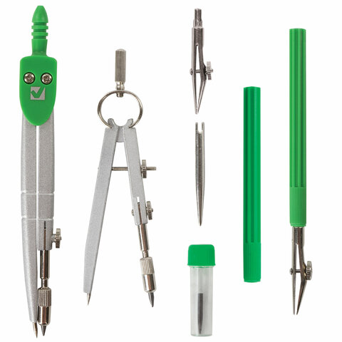 Металлическая готовальня BRAUBERG "Klasse" предназначена для выполнения чертежных работ. Для учеников младших и средних классов.