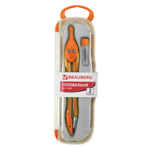 Готовальня BRAUBERG "Modern", 2 предмета: циркуль 135 мм, грифель, пенал с подвесом, 210662