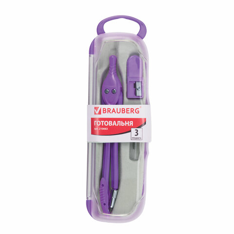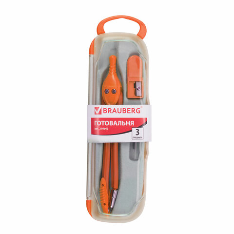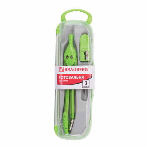 Готовальня BRAUBERG "Modern", 3 предмета: циркуль 135 мм, точилка, грифель, пенал с подвесом, 210663