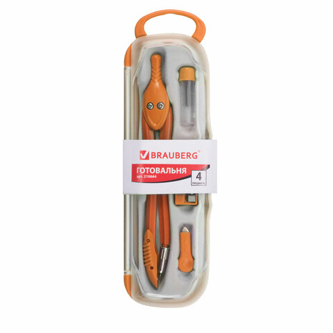 Готовальня BRAUBERG "Modern", 4 предмета: циркуль 135 мм, точилка, отвёртка, грифель, 210664