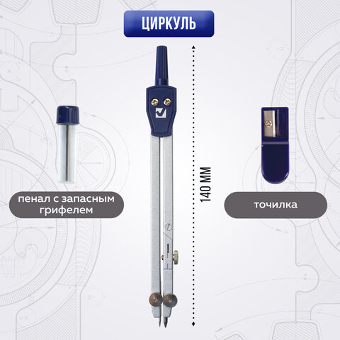 Металлическая готовальня BRAUBERG "Student Oxford" предназначена для выполнения чертежных работ. Для учеников старших классов и студентов.