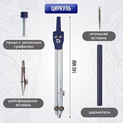 Металлическая готовальня BRAUBERG "Student Oxford" предназначена для выполнения чертежных работ. Для учеников старших классов и студентов.