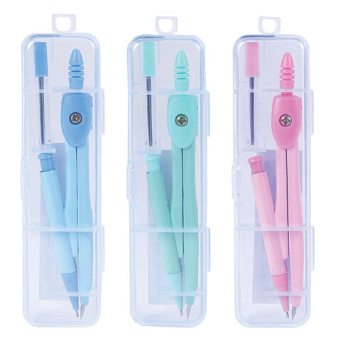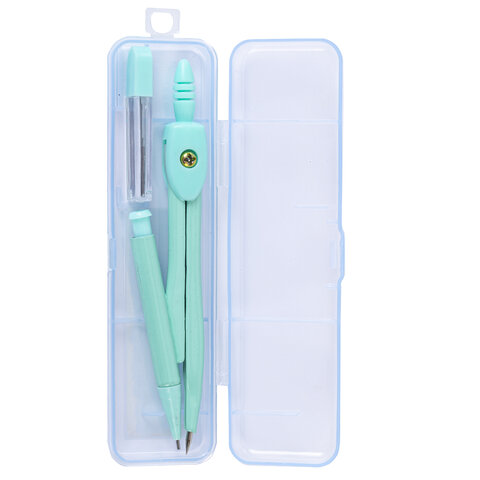 Готовальня ПИФАГОР 2 предмета: циркуль 120 мм, запасные грифели, пластиковый пенал, ассорти, 210861