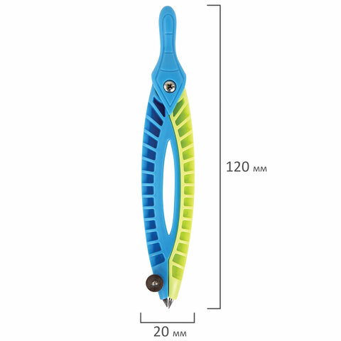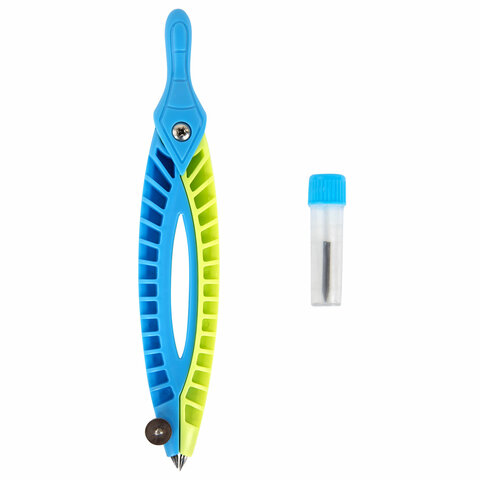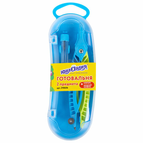 Готовальня ЮНЛАНДИЯ, 2 предмета: пластиковый циркуль 120 мм, грифель, пенал, 210656