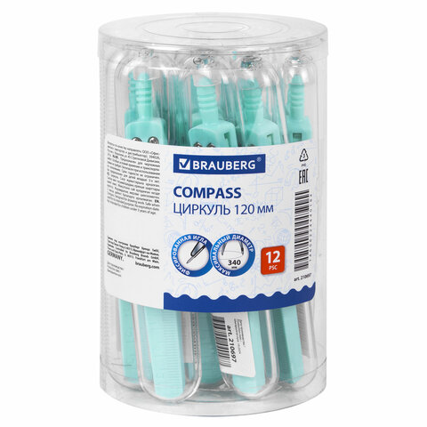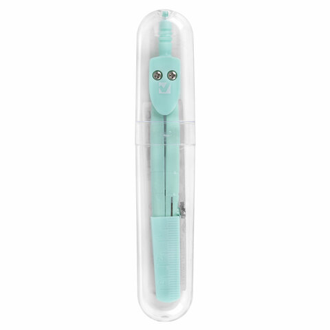 Циркуль BRAUBERG GEOMETRY, 120 мм, пастельно-бирюзовый цвет, защитный колпачок, пластиковый пенал, 210697