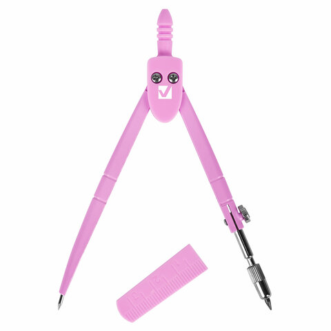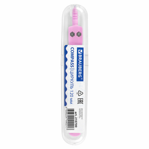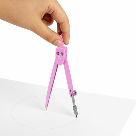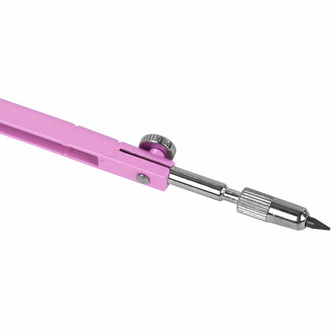 Циркуль BRAUBERG GEOMETRY, 120 мм, пастельно-розовый цвет, защитный колпачок, пластиковый пенал, 210700