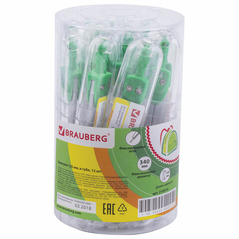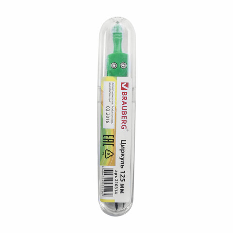 Циркуль BRAUBERG "Klasse", 125 мм, туба, классный, 210314