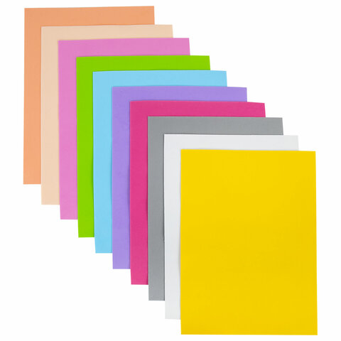 Пористая резина/фоамиран А4, 1 мм, НАБОР, 10 листов, 10 цветов, пастельные цвета, ОСТРОВ СОКРОВИЩ, 661695