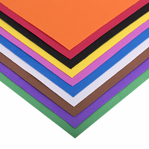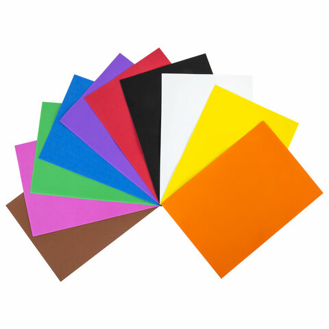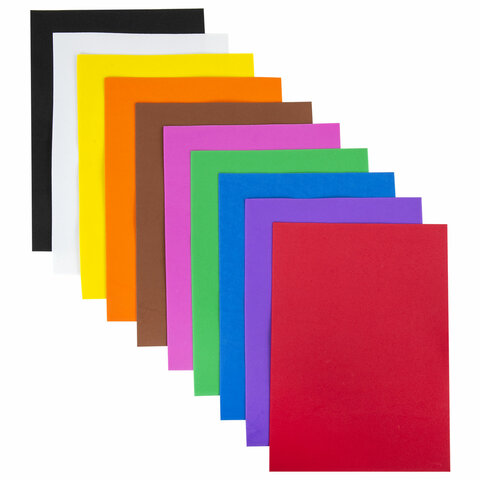 Пористая резина/фоамиран А4, 1 мм, НАБОР, 10 листов, 10 цветов, яркие цвета, ОСТРОВ СОКРОВИЩ, 661696
