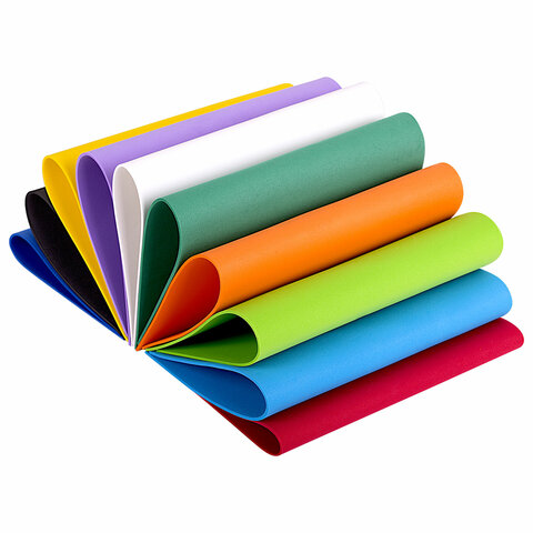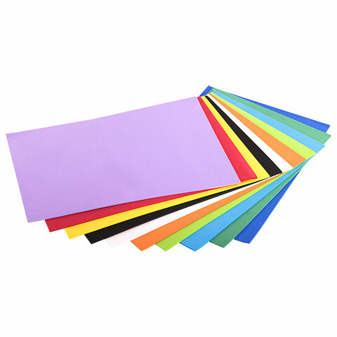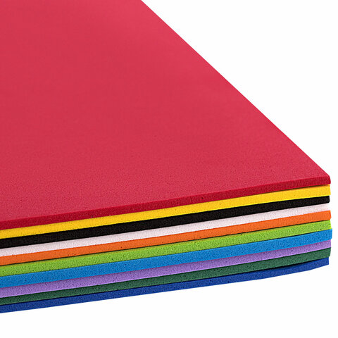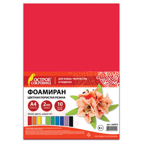 Пористая резина/фоамиран А4, 2 мм, НАБОР №1, 10 листов, 10 цветов, яркие цвета, ОСТРОВ СОКРОВИЩ, 660073
