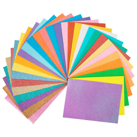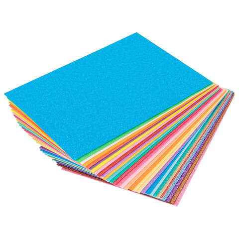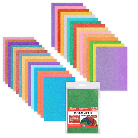 Пористая резина/фоамиран А4, 2 мм, НАБОР, 30 листов, 30 цветов, яркие цвета, блестки, ОСТРОВ СОКРОВИЩ, 665666
