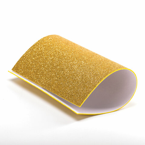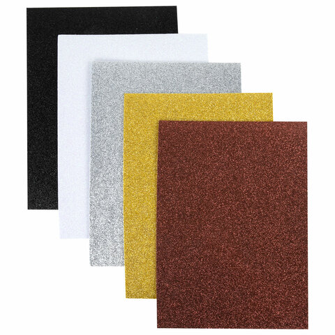 Пористая резина/фоамиран А4, 2 мм, НАБОР, 5 листов, 5 цветов, металлик, блестки, самоклеящаяся, ОСТРОВ СОКРОВИЩ, 662776