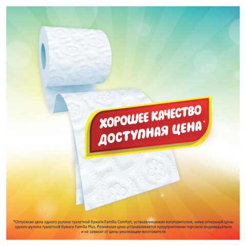 Двухслойная туалетная бумага FAMILIA COMFORT – экономичный выбор для вашей семьи! В большой упаковке 32 рулона, которых хватит надолго. Мягкая, впитывающая и прочная, бумага не расслаивается и отрывается строго по линии перфорации.