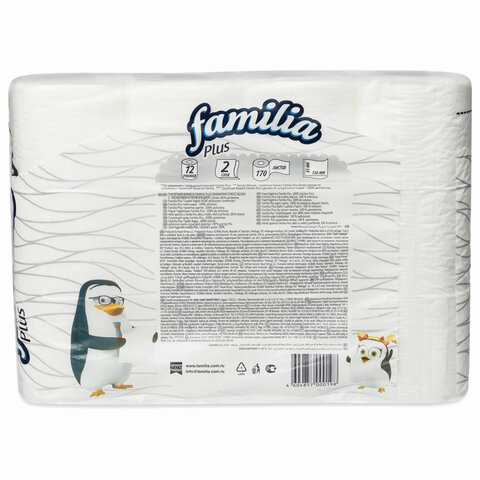 Бумага туалетная бытовая, спайка 12 шт., 2-слойная (12х20,4 м), FAMILIA PLUS, белая, 5080964