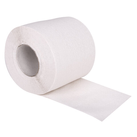 Качественная однослойная туалетная бумага с тиснением и перфорацией в стандартном рулоне.