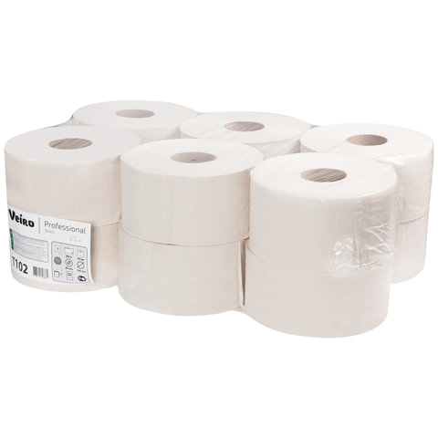 Бумага туалетная 200 м, VEIRO Professional (Система T2), КОМПЛЕКТ 12 шт., Basic, T102
