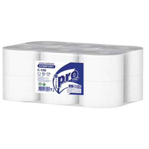 Бумага туалетная 200 метров, PROtissue (T2) COMFORT, 1-слойная, белая, КОМПЛЕКТ 12 рулонов, С190