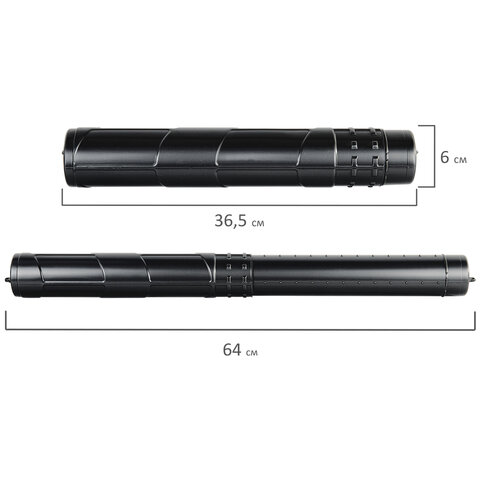 Тубус для чертежей телескопический, длина 36,5-64 см, формат А1, диаметр 6 см, черный, STAFF, 271255