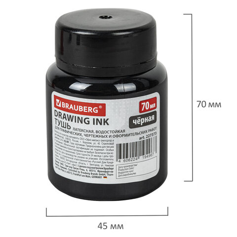 Тушь чертежная BRAUBERG, 70 мл, черная, водостойкая, латексная (черчение, графика, оформление), 227373
