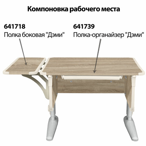 Парта «Дэми» идеально подойдет как для школьника начальных классов, так и для студента. Парта оснащена системой регулировки высоты и угла наклона столешницы. Дополнительно парту можно укомплектовать полкой и органайзером, как представлено на доп.фото.
