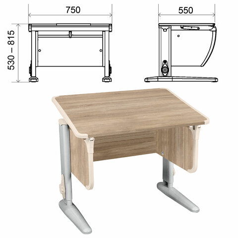 Стол-парта регулируемый "ДЭМИ" СУТ.41, 750х550х530-815 мм, серый каркас, пластик бежевый, дуб сонома (КОМПЛЕКТ)