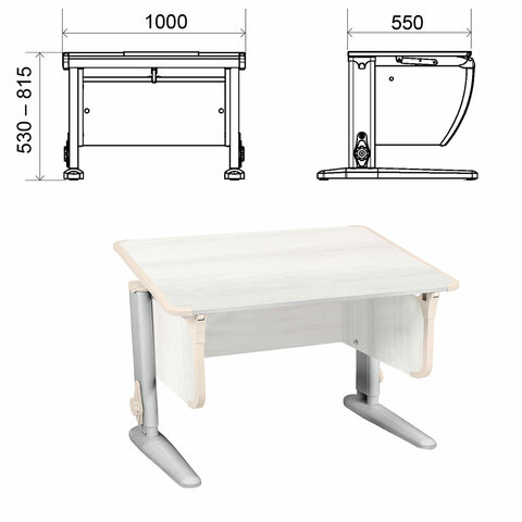 Стол-парта регулируемый "ДЭМИ" СУТ.43, 1000х550х530-815 мм, серый каркас, пластик бежевый, рамух белый (КОМПЛЕКТ)