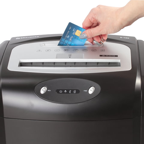 Бесшумный уничтожитель документов (шредер) BRAUBERG S-18 предназначен для уничтожения документов, компакт-дисков и пластиковых карт (банковских, дисконтных и прочих), потерявших актуальность.