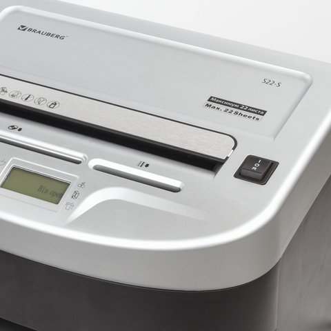 Уничтожитель (шредер) BRAUBERG S22-S, 2 уровень секретности, полоски 4 мм, 22 листа, корзина 34 литра, CD, 531773