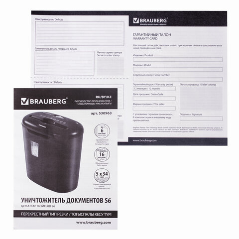 Уничтожитель документов (шредер) BRAUBERG S6 предназначен для уничтожения документов и пластиковых карт (банковских, дисконтных и прочих), потерявших актуальность.