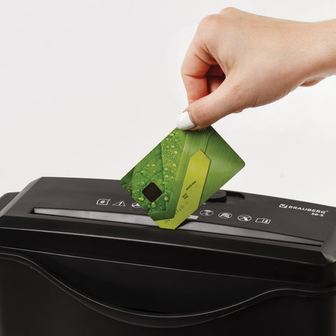 Уничтожитель документов (шредер) BRAUBERG S6-S предназначен для уничтожения документов и пластиковых карт (банковских, дисконтных и прочих), потерявших актуальность.