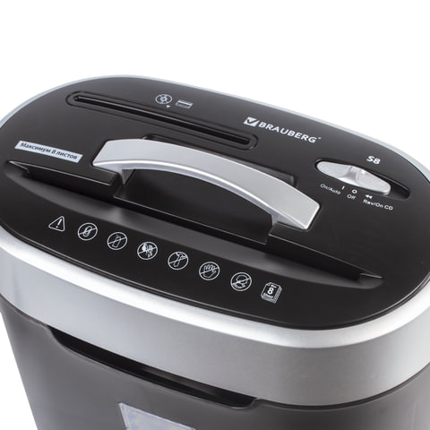 Уничтожитель документов (шредер) BRAUBERG S8 предназначен для уничтожения документов, компакт-дисков и пластиковых карт (банковских, дисконтных и прочих), потерявших актуальность.