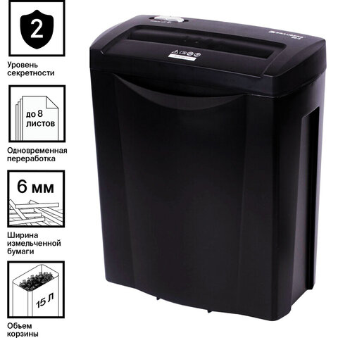Уничтожитель (шредер) BRAUBERG S8-S, 2 уровень секретности, полоски 6 мм, 8 листов, корзина 15 литров, 531088